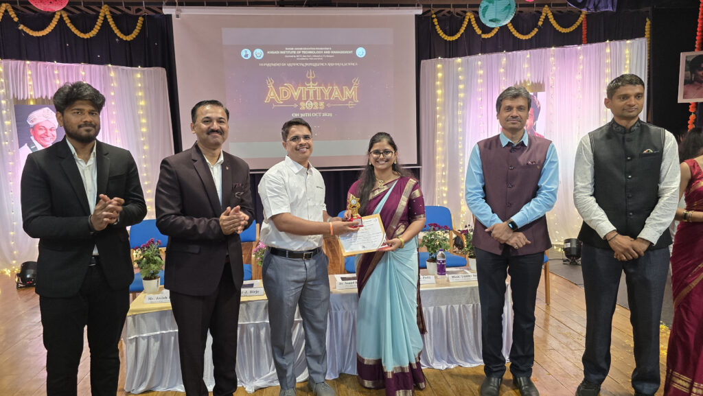 The Department of AI & DS, AITM Belagavi organized the Inauguration of the Students’ Association 2025–26 and Fresher’s Welcome on 30th October 2025. Mr. Yuvraj Patil, Manager (System & Analysis), TATA Hitachi, was the Chief Guest, and the event was presided over by Dr. Anand Deshpande along with faculty members. The program included a welcome dance, welcome address, annual report presentation, and felicitation of academic toppers. The Chief Guest spoke about the growing importance of Artificial Intelligence highlighting its growing significance and diverse applications across industries. Dr. Veena Deshmukh encouraged students to enhance their behavioral, academic, and technical skills.