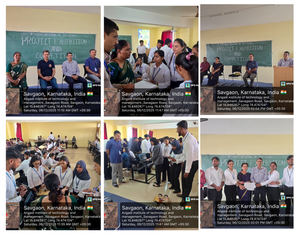 The Department of Artificial Intelligence and Data Science (AI & DS), Angadi Institute of Technology and Management (AITM), Belagavi, organized a Project Exhibition on December 6, 2025, showcasing students’ innovative ideas and technical skills in AI and Data Science.